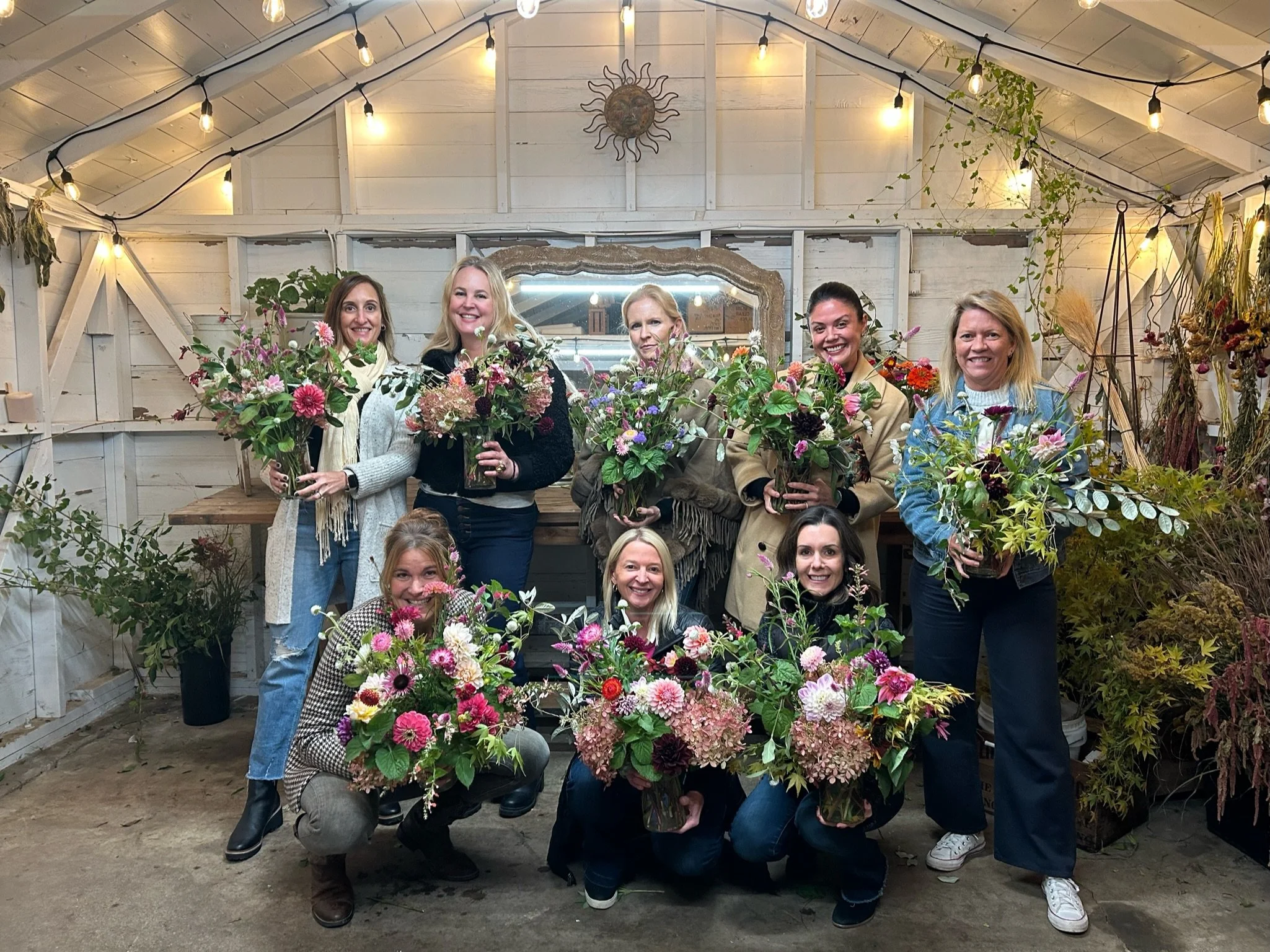 Workshops are held outside on our farm [typically under an event tent], inside our studio for cooler temperatures, or at a location of your choosing!